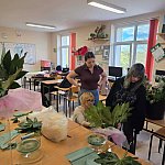 Całość stworzyła spójną, estetyczną i pełną wdzięku aranżację, która przyciągała uwagę i podkreślała wyjątkowy charakter wydarzenia. Była to nie tylko piękna dekoracja, ale również najlepszy dowód na to, że praktyczne zajęcia zawodowe rozwijają kreatywność, uczą precyzji oraz pozwalają uczniom zdobywać cenne doświadczenie w realnych działaniach florystycznych.