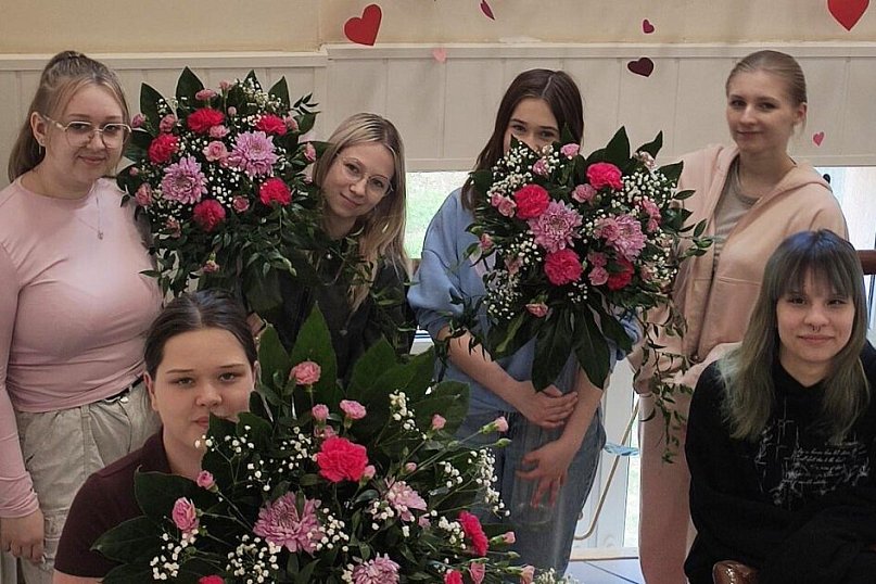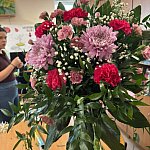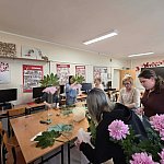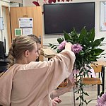W kwietniu odbyły się wyjątkowe zajęcia bukieciarsko-florystyczne, podczas których młodzież poznawała zasady komponowania dekoracji roślinnych oraz doskonaliła techniki pracy z żywym materiałem florystycznym. Uczniowie wykonywali kompozycje z wykorzystaniem takich roślin jak aralia, ruscus, goździki, chryzantemy oraz delikatna gipsówka. Starannie dobrana kolorystyka – odcienie malinowe, różowe i wrzosowe, przełamane subtelną bielą – nadała aranżacjom elegancki, a zarazem świeży charakter.