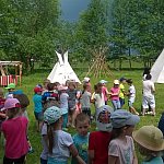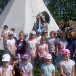 11.05.2018 dzieci ze starszych grup z wraz z paniami z Przedszkola Miejskiego ?Tęczowy Zakątek? wybrały się na wycieczkę do Wioski Indiańskiej koło Bydgoszczy. Na samym początku przywitał ich indiański Wódz, który poprowadził Ich po wiosce. Przedszkolaki poznały indiańską kulturę i zwyczaje. Bawiły się, tańczyły, strzelały z łuku oraz rzucały do celu. Nad wszystkim czuwał indiański Wódz. To była niesamowita przygoda, która pozostanie dzieciom na długo w pamięci.
