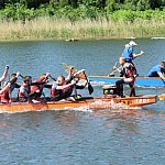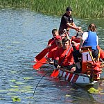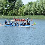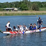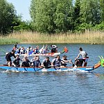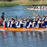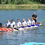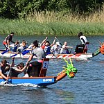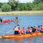 Ależ to była walka ! Wszyscy zawodnicy maksymalnie zaangażowani, przejęci dawali z siebie maksimum wysiłku. Stowarzyszenie Sportów Wodnych ?DRAGON? w Chełmnie zorganizowało dzisiaj XI CHEŁMIŃSKIE WYŚCIGI ŁODZI SMOCZYCH nad Jeziorem Starogrodzkim. Do sportowej rywalizacji dołączyło sporo drużyn. Swoje 10-12 osobowe grupy zespołów oraz bębniarza nadającego rytm wystawili:
