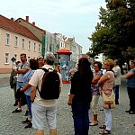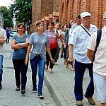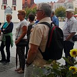 21.08.2016 o godz.10:30, jak co tydzień, spod Ratusza wyruszyła kolejna grupa osób zwiedzających miasto w cyklu ?XX Jubileuszowych Spacerków po Chełmnie?. Przewodnikiem była Jolanta Jaszczak, która przybliżyła zgromadzonym historię średniowiecza. Uczestnicy słuchali o urbanistycznym układzie ulic, wyznaczaniu ich długości według miary pręta, prawie i przywilejach chełmińskich. Dawna zabudowa klasztoru, jego skarbiec, relikwie w świątyni oraz dzieje pochowanej w krypcie ksieni-reformatorki zakonu benedyktynek, Magdaleny Mortęskiej, wzbudziły ogromne zainteresowanie. Mimo niezbyt sprzyjającej pogody turystom udało się zobaczyć kilka najważniejszych zabytków naszego miasteczka.
