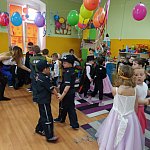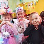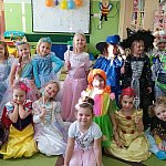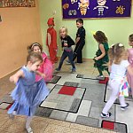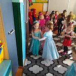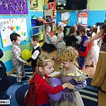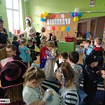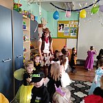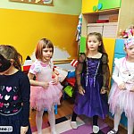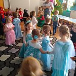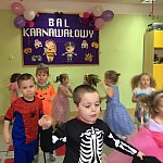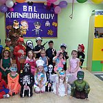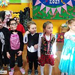 W tym dniu do przedszkola przychodziły kolorowe postacie. Dzieci przebrane były za bohaterów znanych bajek, w salach przedszkolnych można było spotkać wróżki, królewny, księżniczki, motylki, rycerzy, piratów, policjantów, żołnierzy, ... nie sposób zliczyć i wymienić tych wszystkich postaci. Sale były pięknie ozdobione, wystrój wprowadzał w radosny nastrój oraz zachęcał wszystkich do wesołej zabawy. Ze względu na sytuację epidemiologiczną , każda grupa bawiła się w swojej sali. Nie mogliśmy jak co roku zaprosić wodzireja, który poprowadziłby bal , lecz panie nauczycielki bardzo fajnie poradziły sobie z zachęceniem przedszkolaków do zabawy poprzez przygotowanie konkursów, gier oraz muzyki, która była skoczna i rytmiczna.