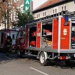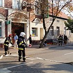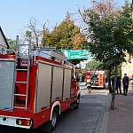 W wyniku zaprószenia ognia dochodzi do pożaru w biurze na 1 piętrze. Pożar szybko się rozprzestrzenia, występuje duże zadymienie. Pracownicy banku próbują gasić pożar przy pomocy podręcznego sprzętu gaśniczego - bez powodzenia. Przeprowadzają ewakuację. Czujniki ppoż budynku natychmiast uruchamiają alarm w komendzie Państwowej Straży Pożarnej. Na miejsce przyjeżdżają 3 zastępy OSP i PSP.