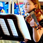 Obie panie zaprezentowały wspaniałe brzmienie instrumentów smyczkowych w repertuarze muzyków klasycznych.