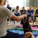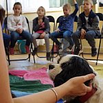 27 września w Gimnazjum i Liceum Katolickim Księży Pallotynów przy ulicy Słowackiego 1 w Chełmnie, w godzinach od 10:00 do 13:00 odbyły się zajęcia pt. ?Zabawa z pieskiem ? dogoterapia?.