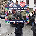 Wiatr i deszcz im nie przeszkadza! Z uśmiechami na twarzach rozpoczęli Finał Wielkiej Orkiestry Świątecznej Pomocy w Chełmnie. Dumnie prezentowali transparent z hasłem: "Pogoda nam nie sprzyja, ale i tak GRAMY DALEJ".