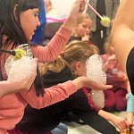 Na koniec każdy miał okazję samodzielnie stworzyć figurę z gęstej piany mydlanej i zostać zamkniętym w gigantycznej bańce.