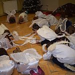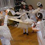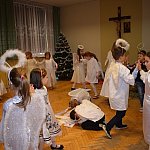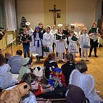 Dnia 05.01.2017 na dworze było bardzo zimno, pogoda nie sprzyjała spacerom, tym bardziej dzieci z Katolickiej Szkoły Podstawowej księży Pallotynów, które przygotowały "Wspomnienie Jasełkowe", cieszyły się, że dotarli do nich goście. Nie wszystkim chełmińskim przedszkolom (ze względu na typowo zimowe warunki atmosferyczne) udało się przyjść na przedstawienie, a szkoda...bo było bardzo pięknie przygotowane. Zaroszonych gości powitała pani wicedyrektor Kinga Mika. Każda z klas zaśpiewała swoją kolędę, kółko taneczne zaprezentowało taniec aniołów, kółko teatralne wspaniale wystąpiło w programie Jasełkowym, a swoje muzyczne umiejętności pokazała szkolna "scholka". W solowym repertuarze zaprezentowały się uczennice III klasy: Hania Mydlikowska, Agnieszka Dąbrowska, a na gitarze grała Karolina Ślesińska. Nad całością programu czuwały panie wychowawczynie z "Katolika". Na zakończenie programu na dzieci czekała słodka niespodzianka.