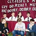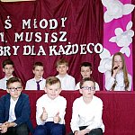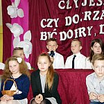"Dobro jest w każdym z nas. "-to przewodnia myśl tegorocznego Wieczorku dla Rodziców, który jest, przypominamy, organizowany przez naszą szkołę w podziękowaniu za wychowanie i wsparcie w domu najlepszych uczniów Szkoły Podstawowej nr 4. Występujący recytowali przepiękne teksty, cytowali mądre słowa o dobroci wielkich umysłów tego świata i śpiewali związane z tematyką piosenki. Mówili o tym, jak ważne jest dobro w kontaktach nie tylko z człowiekiem, ale też podczas obcowania z przyrodą. I tym razem nie zabrakło scenek kabaretowych, które dzięki brawurowej grze aktorskiej uczniów rozbawiły słuchaczy do łez! Powiało też grozą, gdy aktorzy z klasy szóstej w mistrzowski sposób przedstawili fragment II części "Dziadów " Adama Mickiewicza.