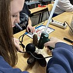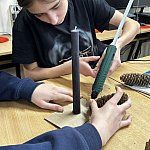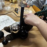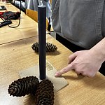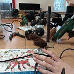 Szyszki robiły za naturalne akcenty, a odpowiednie ułożenie wszystkiego wymagało i wyczucia estetyki, i cierpliwości. Na zakończenie wypełnili stroiki igliwiem. Pod okiem nauczyciela młodzież krok po kroku dopracowywała swoje kompozycje: przycinanie, dopasowywanie, układanie warstw, a na końcu – ostatnie poprawki, żeby stroik wyglądał jak z katalogu.