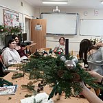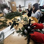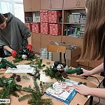 Już od progu pracowni dało się poczuć zapach świerku, a stoły szybko zamieniły się w kreatywny chaos: nożyczki, druciki, kolory, światełka i cała masa pomysłów. Zadanie było jasne – stworzyć świąteczny stroik według wskazówek nauczyciela przedmiotów zawodowych, ale z własnym twistem.