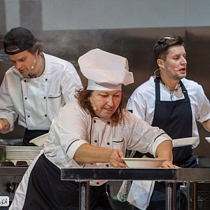 Przygotowując się do spektaklu aktorzy przeszli specjalne szkolenie w jednej z toruńskich restauracji, a kuchnia i produkty na scenie są prawdziwe. W trakcie przedstawienia obsada będzie przyrządzać potrawy.