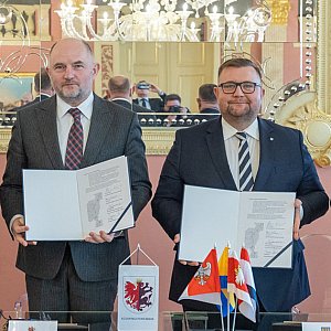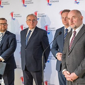 Marszałek Piotr Całbecki oraz marszałek województwa warmińsko-mazurskiego Marcin Kuchciński, marszałek województwa opolskiego Szymon Ogłaza i wicemarszałek województwa wielkopolskiego Wojciech Jankowiak złożyli dziś (9 marca) w Toruniu podpisy pod wspólnym apelem do premiera Donalda Tuska o podjęcie działań zmierzających do budowy drogi ekspresowej S15.