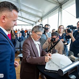 W dzisiejszej uroczystości udział wzięli również wiceminister Maria Mrówczyńska z Ministerstwa Nauki i Szkolnictwa Wyższego, wicedyrektor w NCBR Magdalena Kołodziejska, prezes Holcim Polska Maciej Sypek i dyrektor ds. nauki, badań i rozwoju w tej firmie Magdalena Dobiszewska oraz wojewoda Michał Sztybel.