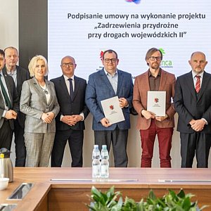 Za wykonanie nasadzeń i trzyletnią pielęgnację drzew odpowiadać będzie Gospodarstwo Szkółkarskie Henryk Hinca z Dobrzycy w Wielkopolsce, z którym zawarliśmy umowę o wartości 890 tysięcy złotych. Podpisy pod umową złożyli dziś (31 marca) pełnomocnik wykonawcy Marcin Hinca oraz dyrektor Zarządu Dróg Wojewódzkich w Bydgoszczy Przemysław Dąbrowski. W uroczystym podpisaniu umowy wzięli udział także członek zarządu województwa Marek Wojtkowski, wiceprzewodnicząca sejmiku województwa Katarzyna Lubańska i przedstawiciele samorządów lokalnych – wójt gminy Chełmno Krzysztof Wypij, burmistrz Pakości Michał Siembab i zastępca wójta gminy Unisław Sylwester Kurdynowski.