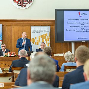 - Wśród wręczonych umów są chociażby projekty dotyczące budowy, rozbudowy i wyposażenia budynków, które służyć będą osobom starszym i potrzebującym. Dostrzegamy ogromne zapotrzebowanie na tego typu usługi. Dlatego wspieramy tworzenie instytucjonalnych rozwiązań, takich jak domy dziennego pobytu czy kluby seniora oraz kierujemy środki na świadczenie usług domowych, czyli pomocy rodzinom osób, które wymagają całodobowej opieki – mówi marszałek Piotr Całbecki.