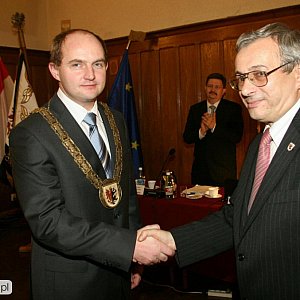 - Zaraz po tym jak sejmik wybrał mnie na marszałka mój poprzednik Waldemar Achramowicz przekazał mi łańcuch. Bardzo ładny gest, kiedy razem weszliśmy do gabinetu. Pamiętam, przeraziło mnie biurko, na którym znajdowała się sterta dokumentów do podpisywania. Gratulując, trochę mi współczuł mówiąc: „to teraz twoja robota”. Tak się zaczęło – wspomina marszałek Piotr Całbecki - Pamiętam też wielki entuzjazm i zapał do pracy z początku urzędowania. Zapewniam, że mam go nadal pod dostatkiem – dodał.