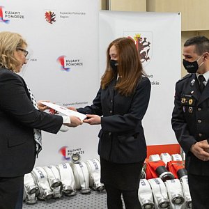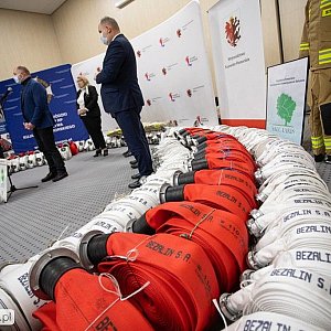- Zdajemy sobie sprawę z tego, że straty, które ponieśli strażacy są bardzo duże. Przekazywany dziś sprzęt wart jest blisko sto tysięcy złotych - to znaczące wsparcie dla jednostek i nasz dowód wdzięczności za ich pracę. Korzystając z okazji, że wśród nas jest pani Natalia Retkowska z OSP Trzebcz Szlachecki, pragnę zwrócić uwagę na to, że w akcji pożarniczej uczestniczyły także kobiety i z tego miejsca podziękować za ich odwagę i hart ducha - podkreślał wicemarszałek Zbigniew Sosnowski.