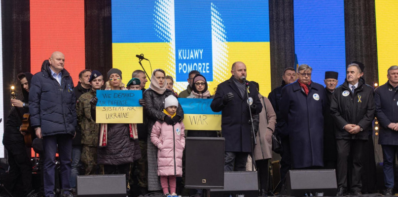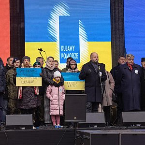 W spontaniczny wiec poparcia dla walczących o wolność Ukraińców zamienił się wczorajszy (6 marca) koncert „Kujawsko-Pomorskie razem dla Ukrainy” na toruńskim Rynku Staromiejskim, którego gospodarzem był marszałek Piotr Całbecki. Artyści, m.in. polsko-ukraińska grupa muzyczna Hanna, Mariusz Lubomski, Łukasz Zagrobelny, Sara Pach i Michał Hajduczenia z zespołem oraz wykonawcy muzyki klasycznej, wystąpili charytatywnie.