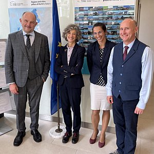 Fundusze Europejskie dla Kujaw i Pomorza (FEdKP) 2021-2027, nasz nowy program regionalny będący podstawą inwestowania w naszym województwie unijnych środków nowej perspektywy, zamyka się kwotą 1 836 mln euro. W sierpniu zarząd województwa przyjął uaktualnioną wersje projektu dokumentu, uwzględniającą uwagi Komisji Europejskiej i polskiego Ministerstwa Funduszy i Polityki Regionalnej. Wczorajsze spotkanie z wicedyrektor generalną w Dyrekcji Generalnej ds. Polityki Regionalnej i Miejskiej KE Emmą Toledano-Laredo i jej zespołem było elementem trwających obecnie oficjalnych negocjacji w sprawie FEdKP. Marszałkowi Piotrowi Całbeckiemu towarzyszyli dyrektor Rafał Pietrucień i wicedyrektor Anna Głuszek z Departamentu Funduszy Europejskich w naszym Urzędzie Marszałkowskim, którzy w Brukseli doprecyzowują ostatnie ustalenia szczegółowe dotyczące programu.