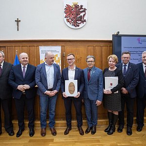 W ceremonii wręczenia umów o dofinasowanie projektów uczestniczyli też wicemarszałek Zbigniew Ostrowski, wicemarszałek Zbigniew Sosnowski i członek zarządu województwa Sławomir Kopyść oraz radni województwa Stanisław Pawlak i Tadeusz Pogoda. Łączna wartość przypieczętowanego dzisiaj wsparcia to ponad 5 milionów złotych. Zdjęcia do pobrania