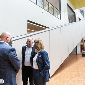 Po centralnym bloku operacyjnym – z dziesięcioma salami zabiegowymi wyposażonymi w sprzęt najnowszej generacji oraz oddziałami przedoperacyjnym i pooperacyjnym - oprowadzał naczelny lekarz szpitala prof. Marek Jackowski. Podkreślił, że blok jest przystosowany zarówno do prowadzenia zabiegów chirurgii klasycznej, jak i chirurgii małoinwazyjnej (laparoskopowej) i chirurgii robotycznej. Właśnie robot chirurgiczny, Da Vinci Xi, jest tu najnowszym nabytkiem. By móc z niego korzystać, w specjalnie przygotowanej sali symulacyjnej szkolą się obecnie trzy dwuosobowe grupy lekarzy-operatorów – chirurdzy ogólni, ginekolodzy i urolodzy. Za konsolą robota podczas realnej operacji staną dopiero po przejściu pełnego cyklu szkoleń i zdaniu egzaminu praktycznego.