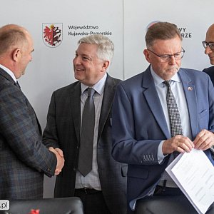 Podpisy pod listem intencyjnym w sprawie stworzenie Centrum Terapii Wychwytu Neutronów Borowych złożyli dziś marszałek Piotr Całbecki i wicemarszałek Zbigniew Ostrowski, reprezentujący TAE Life Sciences dyrektor Robert Hill, dyrektor CO prof. Janusz Kowalewski i wiceprezes Kujawsko-Pomorskiego Centrum Naukowo-Technologicznego im. Jana Czochralskiego Michał Korolko. Rolą tej ostatniej instytucji będzie m.in. opracowanie preparatu kontrastującego do terapii borowo-neutronowej.