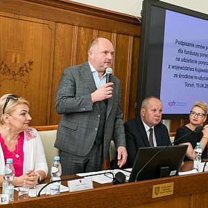 Także dzisiaj marszałkowski Kujawsko-Pomorski Fundusz Rozwoju (KPFR) zawarł umowy pożyczkowe z Kujawsko-Pomorskim Funduszem Poręczeń Kredytowych (KPFPK) i Toruńskim Funduszem Poręczeń Kredytowych (TFPK) z przeznaczeniem środków na udzielanie poręczeń kredytowych małym i średnim firmom. Podpisy pod umowami złożyły prezes KPFR Kamila Radziecka oraz reprezentujące fundusze poręczeniowe prezes Monika Szelc i prezes Monika Mazur-Świerczyńska. Wartość pożyczek to odpowiednio 9,4 mln i 3 mln złotych.