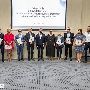 Rekordowe 30 milionów złotych wyniosło tegoroczne wsparcie przekazane przez samorząd województwa na remonty konserwatorskie, prace restauratorskie i roboty budowlane przy zabytkowych obiektach Kujaw i Pomorza. Dotacje trafią na realizację 208 przedsięwzięć w całym regionie. Umowy wręczyli w czwartek (20 lipca) beneficjentom marszałek Piotr Całbecki i przewodnicząca sejmiku województwa Elżbieta Piniewska.