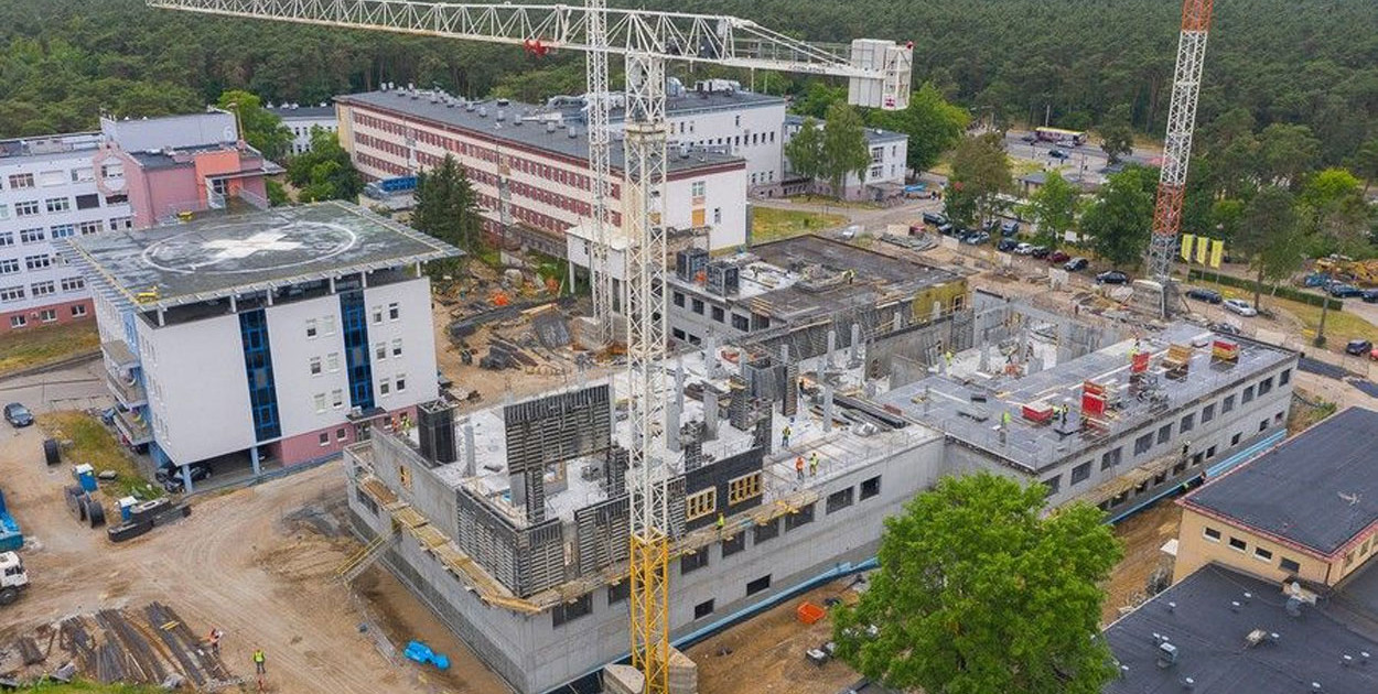 Szpital Popiełuszki przechodzi systematyczny proces kompleksowej modernizacji. Trwają prace przy rozbudowie placówki. W miejscu wyburzonego pawilonu stanął pięciokondygnacyjny nowoczesny i funkcjonalny nowy budynek główny, przyszłe serce lecznicy. Na parterze mieścić się będą szpitalny oddział ratunkowy oraz oddział anestezjologii i intensywnej terapii. Na pierwszym piętrze znajdą się blok porodowy oraz oddziały patologii ciąży, położnictwa i neonatologii. Drugie piętro to przestrzeń zaplanowana dla oddziałów ortopedii i traumatologii oraz chirurgii ogólnej. Złożony z siedmiu sal zabiegowych zintegrowany blok operacyjny znajdzie miejsce na trzecim piętrze; sąsiadować z nim będzie oddział neurochirurgiczny. Ostatnie, czwarte piętro, zostało pomyślane jako przestrzeń techniczna, mieszcząca m.in. maszynerię wentylacyjną i klimatyzacyjną obiektu. Zwieńczeniem budynku będzie platforma z lądowiskiem dla śmigłowców medycznych, zaś w przyziemiu znajdą się apteka szpitalna, centralna sterylizatornia i szpitalna dezynfekcja.