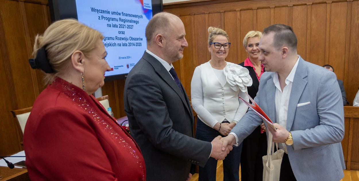 Marszałek Piotr Całbecki spotkał się z samorządowcami i przedsiębiorcami, którzy podpisali w czwartek (28 marca) umowy o dofinansowanie projektów w ramach naszego programu operacyjnego Fundusze Europejskie dla Kujaw i Pomorza (FEdKP) 2021-2027 i Programu Rozwoju Obszarów Wiejskich (PROW). Łączna wartość zakontraktowanego wsparcia to ponad 100 milionów złotych.
