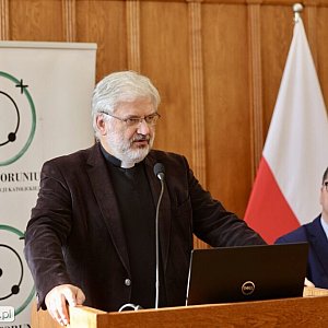 – Dziękuję profesorowi Białkowskiemu za kolejną interesująca konferencję naukową, którą organizujemy w Urzędzie Marszałkowskim. To nie jest zwykłe miejsce na tego rodzaju konferencje, nie spotykamy się w auli uniwersyteckiej, ale zależy nam, by w powszechnej świadomości łączono Urząd Marszałkowski z tego rodzaju wydarzeniami. Szczególnie w obecnych czasach, kiedy coraz trudniej odpowiedzieć sobie na pytanie czym jest prawda. Uważam, że dążenie do prawdy jest istotne dla ludzi, którzy z mandatu społecznego parają się pracą na rzecz drugiego człowieka – mówił witając przybyłych marszałek Piotr Całbecki. – Dziś dzień, w którym Kościół wspomina w liturgii Jana Pawła II, patrona naszego województwa, autora przesłania „Fides et ratio”. Wiara i nauka jako dwa filary, które pozwalają nam dążyć ku prawdzie. One są też tym, czym ja sam kieruję się w życiu i w działalności publicznej. Ci, którzy konfrontują ze sobą wiarę i naukę, którzy uznają je za sprzeczne z sobą, albo nie mają wiedzy, albo nie mają wiary. Pamiętajmy, że papieskie przesłanie „Fides et ratio” wypłynęło właśnie stąd, z Torunia.