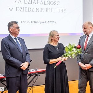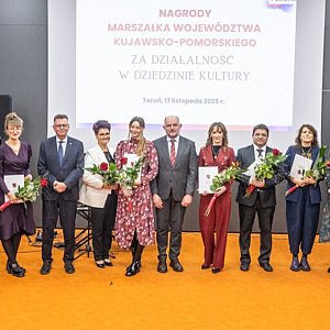 Trzynaścioro artystów i pracowników instytucji kultury odebrało w poniedziałek (17 listopada) w Książnicy Kopernikańskiej nagrody za osiągnięcia w dziedzinie tworzenia i upowszechniania kultury. Wyróżnionym gratulowali marszałek Piotr Całbecki i wicemarszałek Zbigniew Ostrowski.