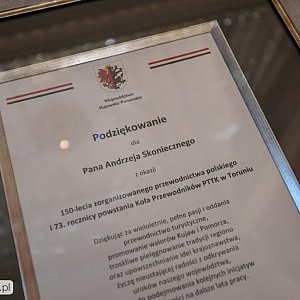 Marszałek Piotr Całbecki uczestniczył w piątek (28 listopada) w obchodach 150. rocznicy zorganizowanego przewodnictwa w Polsce i jubileuszu 73-lecia Koła Przewodników PTTK w Toruniu. Podczas uroczystego spotkania Odznaką za zasługi dla województwa wyróżniona została Magdalena Łubieńska, a medalami Unitas Durat Palatinatus Cuiaviano-Pomeraniensis odznaczeni zostali Ewa Bajraszewska i Bogumił Korzeniewski.