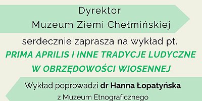 Dyrektor Muzeum Ziemi Chełmińskiej w Chełmnie serdecznie zaprasza na wykład pt. " Prima Aprilis i inne tradycje ludyczne w obrzędowości wiosennej". czytaj więcej