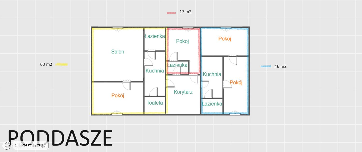 10. 60 m2- kuchnia, łazienka, wc, dwa pokoje.