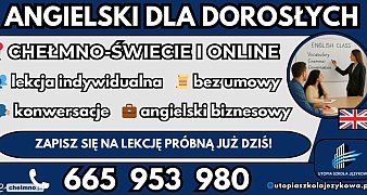 Promuj ogłoszenieAngielski Chełmno i Świecie Oferujemy lekcje angielskiego🇬🇧 i niemieckiego🇩🇪 dla dorosłych i dzieci indywidualnie w Chełmnie, Świeciu i okolicach ✔z dojazdem do ... czytaj więcej