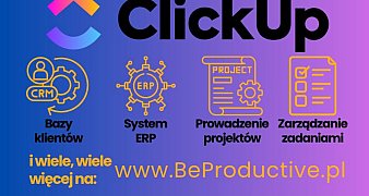 Promuj ogłoszenieClickUp to nowoczesne narzędzie do zarządzania zadaniami, projektami i klientami. Aby w pełni wykorzystać jego potencjał, warto skorzystać z profesjonalnego ... czytaj więcej