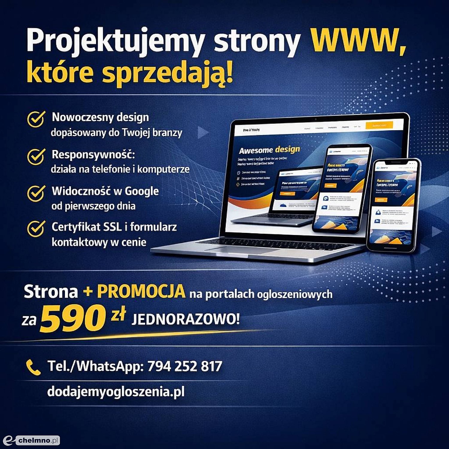 Zajmujemy się też kompleksową promocją firm w internecie. Jeśli chcesz dotrzeć do większej liczby klientów - publikujemy ogłoszenia na dziesiątkach popularnych portali ogłoszeniowych w całej Polsce. Skutecznie, szybko i w przystępnej cenie. Zapytaj nas o szczegóły!