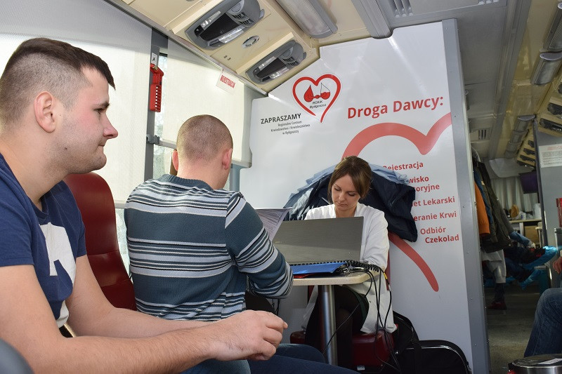 Już od rana na chełmińskim Rynku w Dniu Św. Walentego trwa II Akcja Zbiórki Krwi dla Centrum Onkologii im. prof. F. Łukaszczyka w Bydgoszczy pod nazwą ?KROPLA MIŁOŚCI ? KOCHAM, POMAGAM, RATUJĘ?.