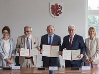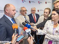 W pasiece znajdującej się na dachu Urzędu Marszałkowskiego w piątek (18 lipca) odbyło się pierwsze w tym roku miodobranie. Od pięciu rodzin pszczelich pozyskamy w tym roku 100 kilogramów wielokwiatowego słodkiego i aromatycznego miodu. W miodobraniu wziął udział marszałek Piotr Całbecki, który prywatnie jest zapalonym pszczelarzem posiadającym także pasiekę. – Obecność uli na dachu Urzędu Marszałkowskiego ma wymiar edukacyjny – podkreślił marszałek Piotr Całbecki. – Zwracamy uwagę, że bez pszczół nie będzie życia na ziemi. Poprawimy też bioróżnorodność wskazując jednocześnie, że środowisko miejskie sprzyja tym owadom, a pozyskany miód jest najwyższej jakości. Każdy ul jest domem dla około 30 tysięcy pszczół. Opiekujący się od czterech lat marszałkowską pasieką Tomasz Paul z Gniewkowa przyznał, że tegoroczny sezon nie należał do łatwych. Początek wiosny napawał optymizmem, bo już w połowie kwietnia pszczoły zaczęły zbierać nektar, ale podczas majowych przymrozków miodu w ulach ubyło,. Sezon uratowała sprzyjająca oblotom czerwcowa aura. Miodobranie było okazją do wymiany pszczelej matki w jednym z uli. Z pięciu uli pozyskamy w tym roku 100 kilogramów wielokwiatowego (w większości z nektaru klonowego i lipowego) miodu. Jakość badanego przez właściwe służby słodkiego przysmaku za każdym razem jest oceniana bardzo wysoko. Miód z marszałkowskiej pasieki trafia do słoików i służy jako jeden z bogatej oferty gadżetów. Samorząd województwa konsekwentnie wspiera pszczelarzy, którzy prowadząc pasieki dbają o utrzymanie bioróżnorodności. Zobacz: Reklama Wsparcie dla pszczelarstwa Zapylanie – rzecz kluczowa dla ekosystemów Dotacje dla pszczelarzy Beata Krzemińska rzecznik prasowa Urzędu Marszałkowskiego