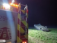 13.04.2025 o godz. 21:21 do Komendy Powiatowej PSP w Chełmnie wpłynęło zgłoszenie o dachowaniu samochodu osobowego w miejscowości Głażewo. Zastana sytuacja: Samochód osobowy Opel Astra po dachowaniu, znajdował się poza jezdnią. Kierujący opuścił samochód o własnych siłach (widoczna rana głowy). Brak dodatkowych zagrożeń. Podjęte działania: Zabezpieczono miejsce zdarzenia. Udzielono KPP osobie poszkodowanej (wsparcie psychiczne, opatrzono ranę na głowie). Po przybyciu ZRM przekazano im osobę poszkodowaną. Ratownik medyczny po badaniu podjął decyzje o transporcie poszkodowanego do szpitala. Odłączono akumulator w pojeździe. Miejsce zdarzenia i samochód przekazano protokolarnie funkcjonariuszowi Policji i zakończono działania. W interwencji brały udział zastępy OSP Unisław, OSP Grzybno, i JRG Chełmno. Straty oszacowano na 5 tys. złotych. Materiał: KP PSP Chełmno, Fot: OSP Unisław